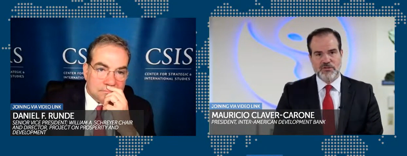 Daniel F. Runde: I’m Dan Runde. I’m a senior vice president at CSIS. Thank you for joining me for a conversation with the President of the Inter-American Development Bank, Mauricio Claver-Carone.