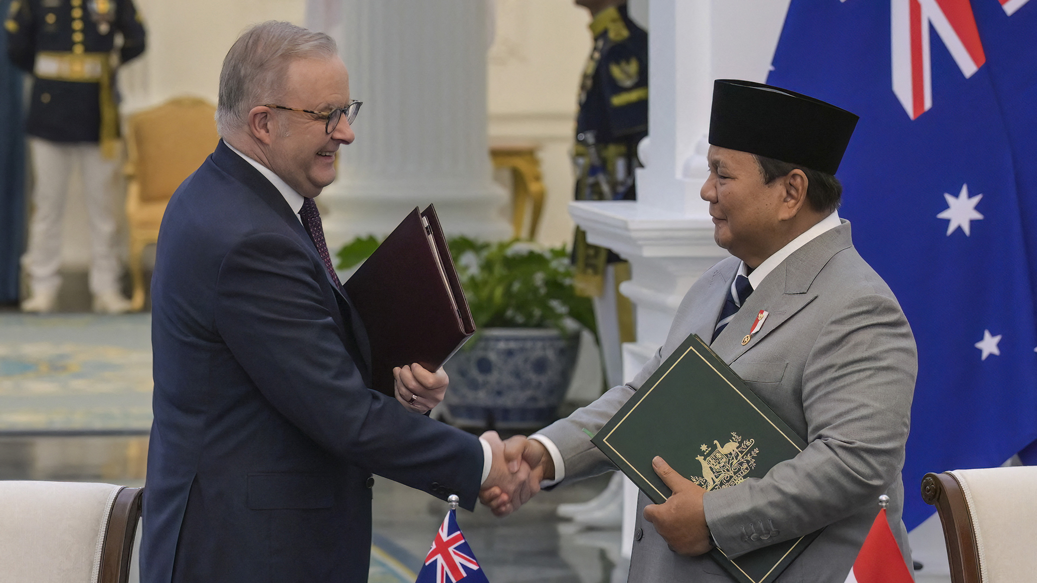 Announced in November 2025 and signed in February 2026, Australia and Indonesia agreed to a treaty that would commit them to consult each other if either country is threatened. The agreement was shaped by the 1995 bilateral security agreement that was scrapped four years later due to an Australia-led United Nations peacekeeping mission in Timor-Leste. Additionally, new initiatives to deepen defense cooperation were announced, including developing joint training facilities in Indonesia, offering to create a position for a senior Indonesian officer to work within the Australian Defence Force, and expanding programs that foster connections among emerging military leaders.