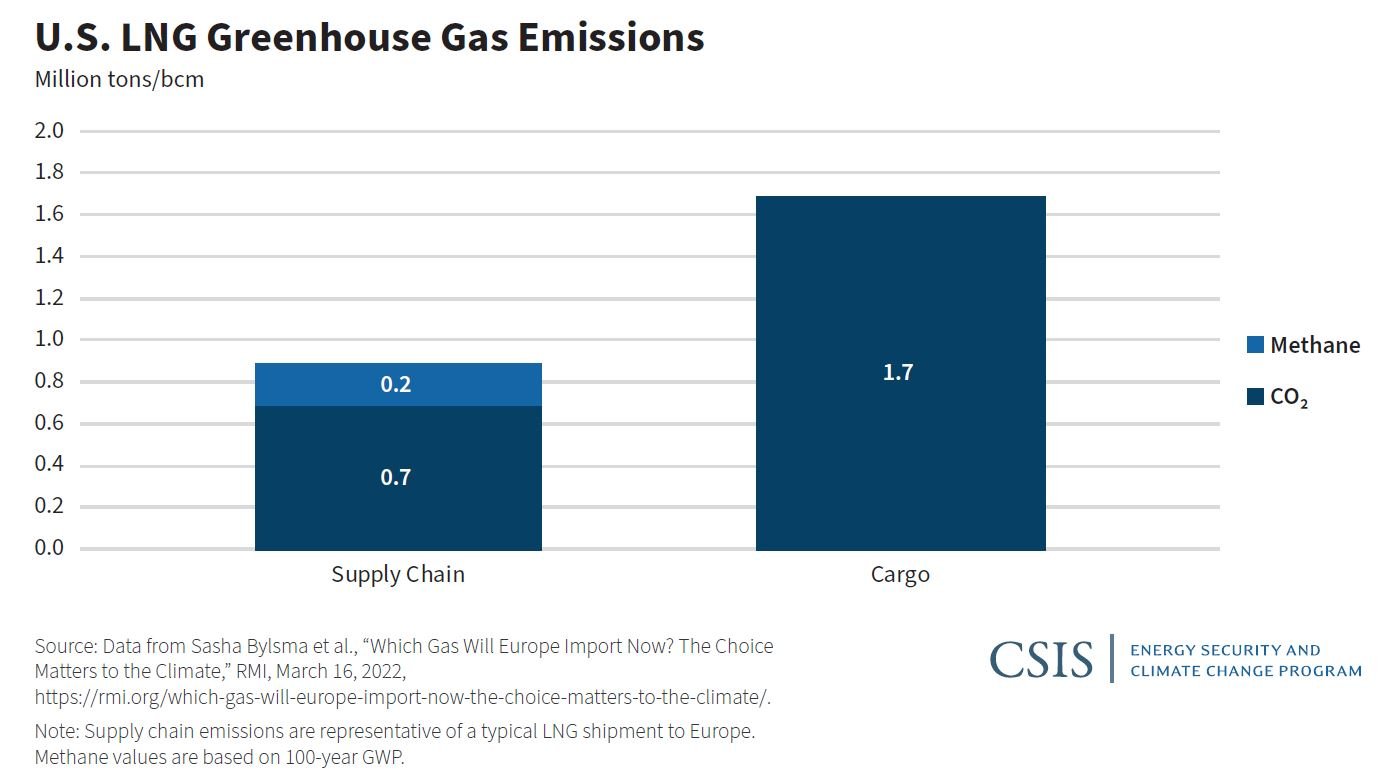 In the short term, the pivot to U.S. gas represents incremental good news for the climate. Emissions associated with supply chains for U.S. LNG can be up to 50 percent lower than those associated with Russian pipeline gas (though the actual performance is contingent on exactly where in the United States the gas is produced). This is a lucky coincidence and has more to do with old leaky Soviet pipeline infrastructure than the U.S. oil and gas industry’s superior environmental practices. However, to be a viable long-term energy option for Europe and other economies in a decarbonizing world, U.S. LNG will still need to address its substantial carbon footprint—both upstream emissions and the emissions embedded in the cargo itself.