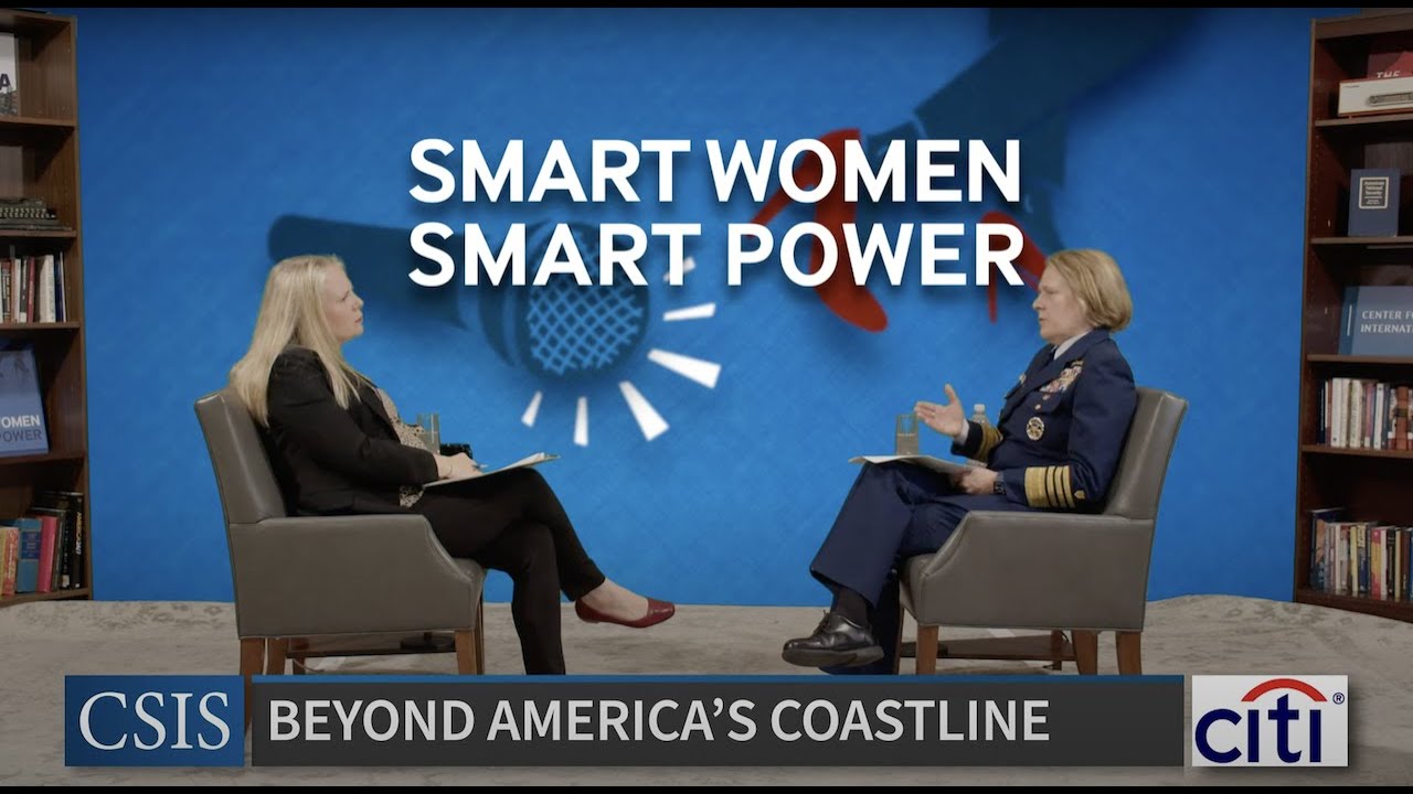 First, welcome back. You were here at Smart Women, Smart Power two and a half – before my time here – two and a half years ago. And you were serving as the Pacific area commander. And you shared insights on Arctic security, the threat of illegal fishing, to maritime security, challenges of managing the Coast Guard, and then COVID. So we’re so excited to have you back today as the commandant of the Coast Guard.