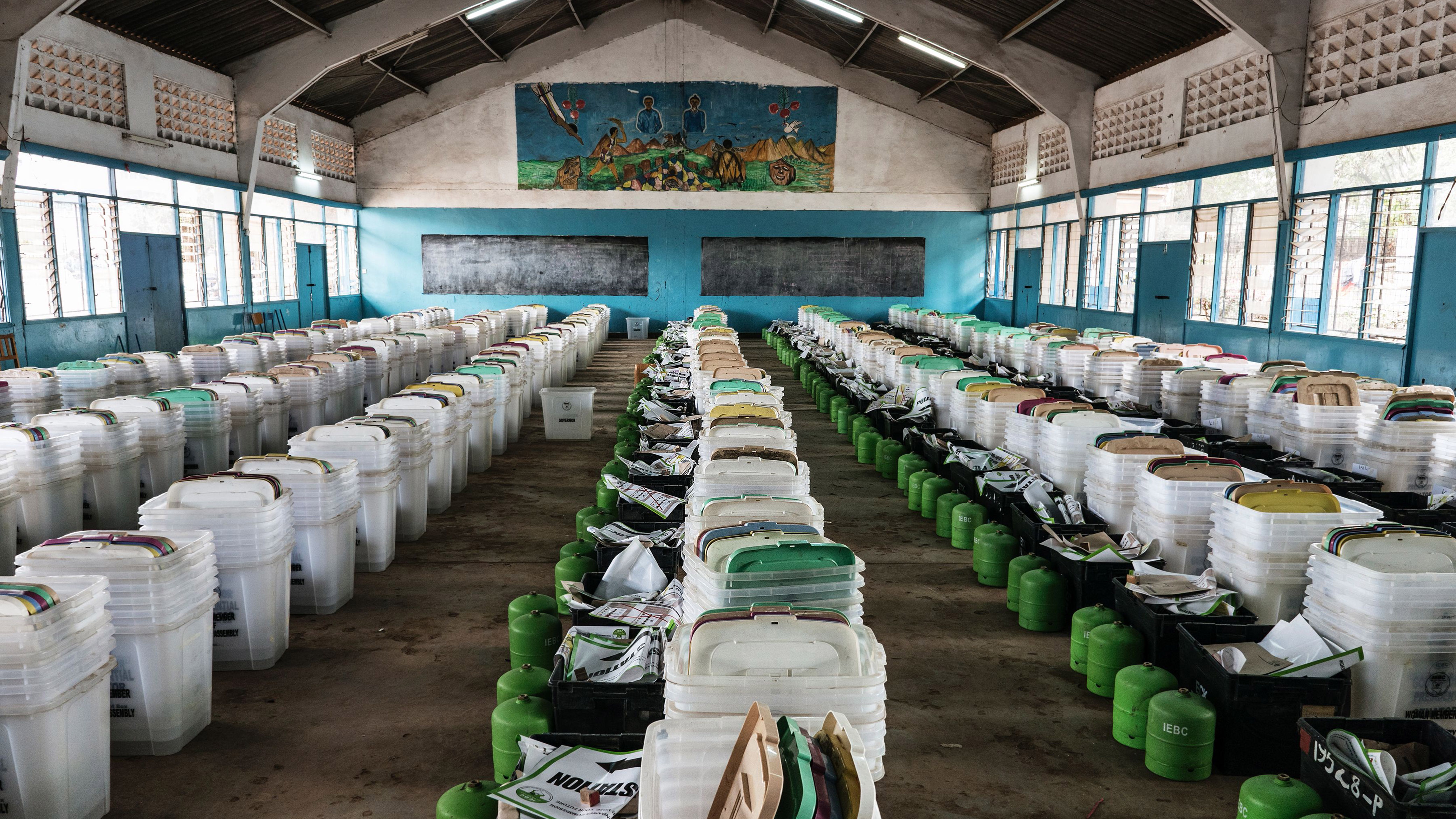 Police keep watch over a polling station in Nairobi, Kenya. - Andrew Renneisen/Getty Images