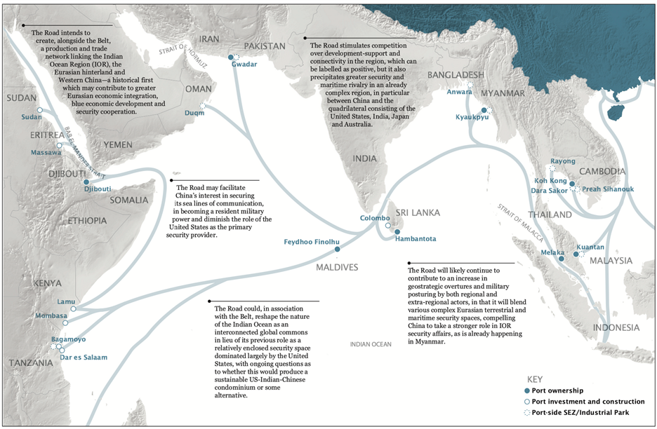 Source: Richard Ghiasy, Fei Su and Lora Saalman, The Maritime Silk Road, Security Implications, SIPRI, 2018, pp. 6, 29, https://www.sipri.org/sites/default/files/2019-10/the-21st-century-mari…. Map by Christian Dietrich.