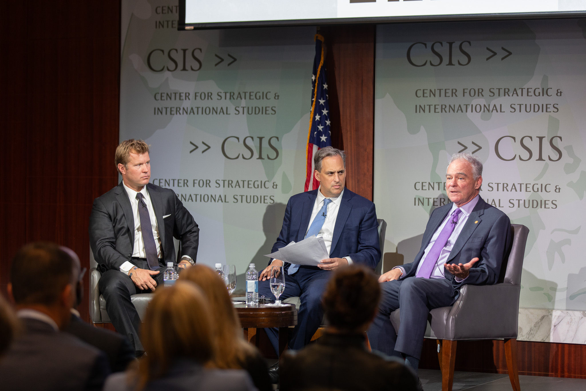 Adm: Spicer: Senator Sheehy remains a qualified FAA commercial pilot and a certified flight instructor. He’s committed to strengthening American innovation, national security, and rural economic growth. I now turn it over to Dr. Seth Jones, who will engage Senator Kaine and Senator Sheehy in a moderated discussion that will include audience Q&A. Dr. Jones is president of the Defense and Security Department and Harold Brown chair at CSIS. Over to you, Seth.