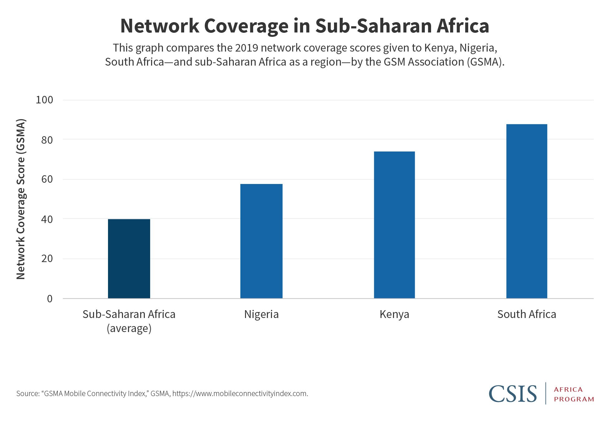 Sub-Saharan Africa is undergoing a digital transformation. From students learning to code and drones delivering medical supplies to the increased usage of mobile payment platforms, daily life is being redefined by digital technologies. According to the International Monetary Fund, internet penetration in sub-Saharan Africa has grown tenfold since the early 2000s, compared with a mere threefold increase in the rest of the world. The number of tech hubs on the continent has grown by 50 percent over the past several years, now numbering more than 600. And the region was home to nearly half of the world’s mobile money accounts in 2018 and will see the fastest growth in mobile money technology through 2025, according to the Brookings Institution. Three of the most digitally advanced countries in the region—Kenya, Nigeria, and South Africa—boast impressive internet penetration and are expected to be the top three markets for smartphone connections in 2025, according to the GSM Association (GSMA).