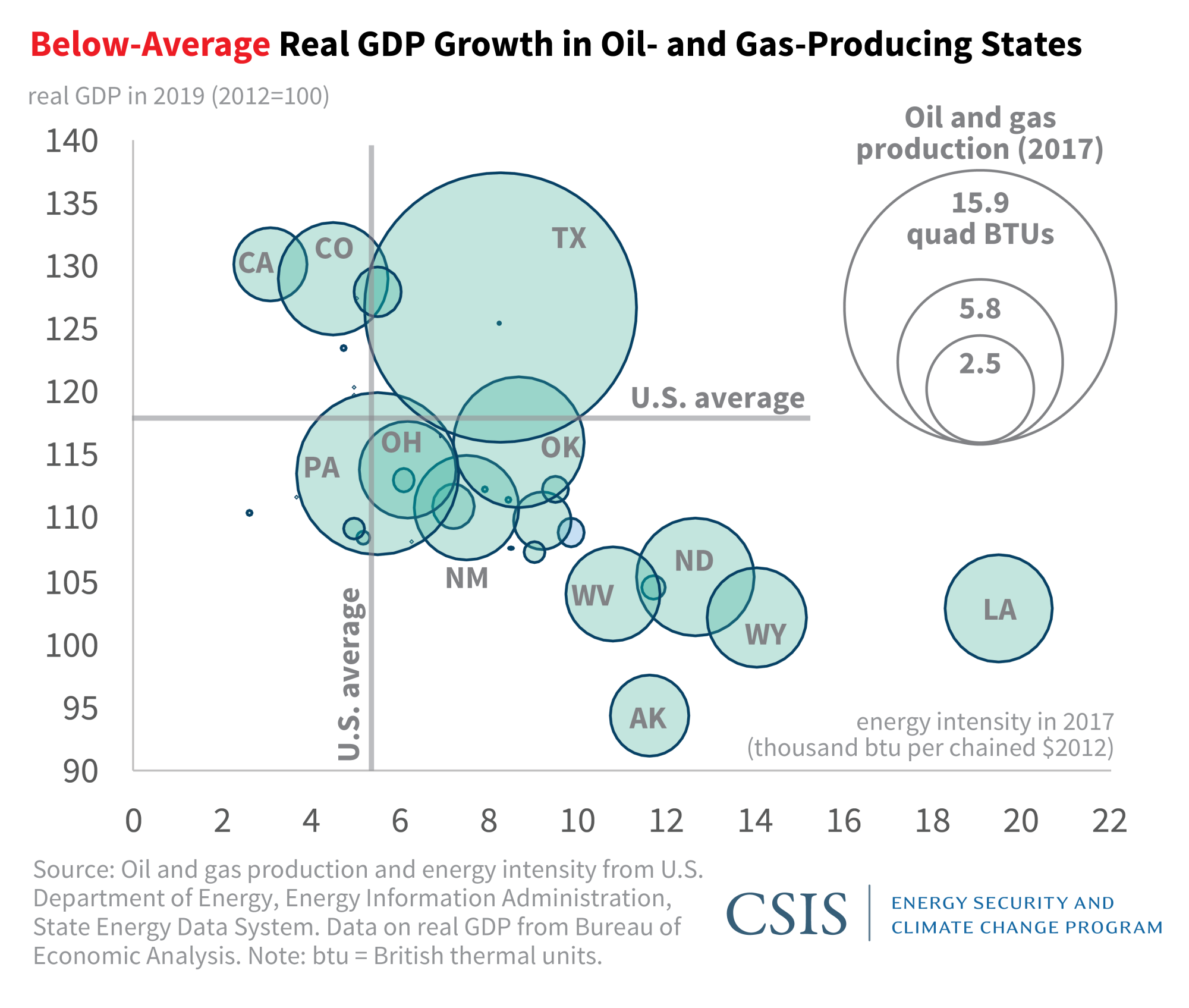 Ideally, support for the industry would further well-defined energy security objectives, rather than merely bail out companies that may have gone out of business anyway. Yet missing from this debate is the recognition that many states and communities around the country have economies tied to oil and gas production and prices. No matter what one thinks of the oil and gas industry, these places will suffer from the slump in energy prices, and their economic recovery will be hampered by the broader transition to low-carbon energy sources.