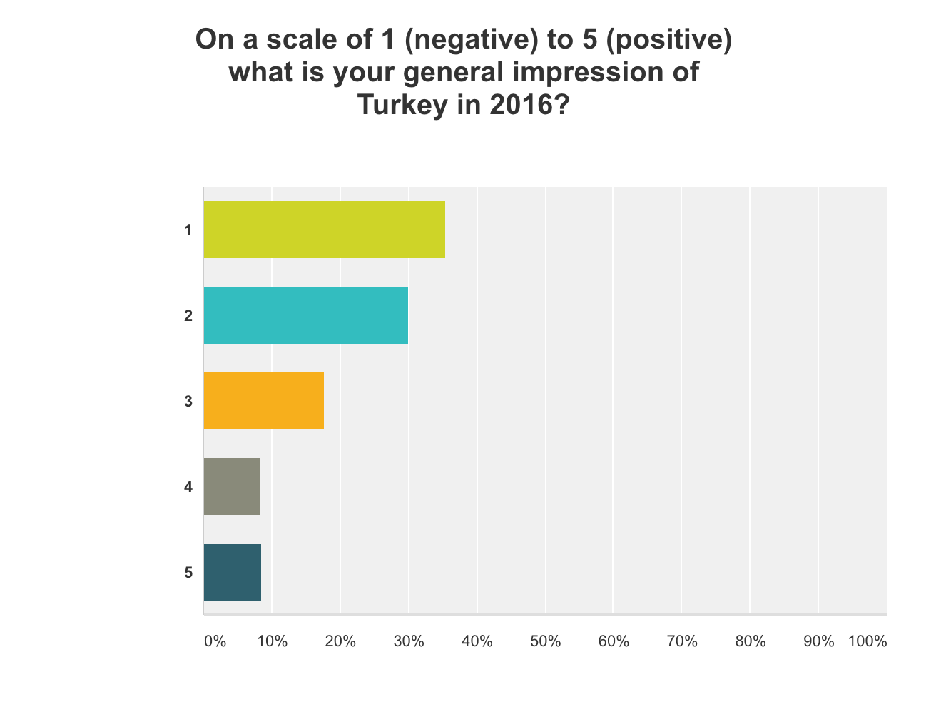 In addition to the above-noted concerns about social and political fracturing, nearly 65 percent of respondents have a negative impression of Turkey in 2016.