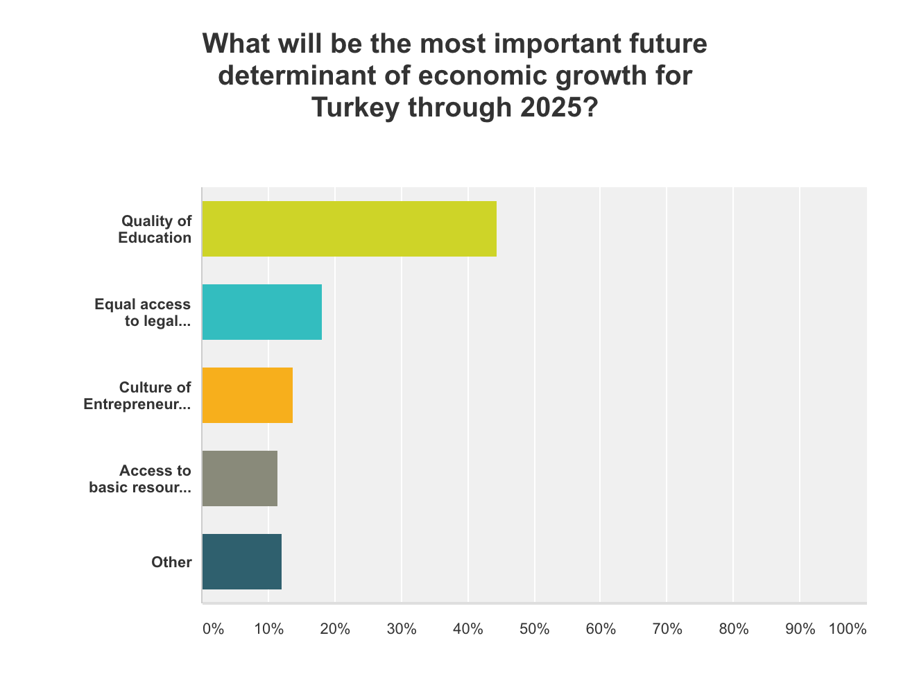 Finally, nearly 45 percent of responses highlighted quality of education would be the most important determinant of future economic growth in Turkey.