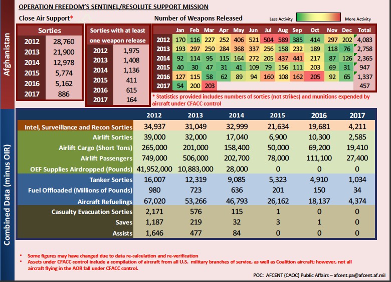 Figure 3: Still Very Limited U.S. and Allied Close Air Support of an Afghan Air Force with Only Token Close Air Support Capability (as of March 31, 2017)