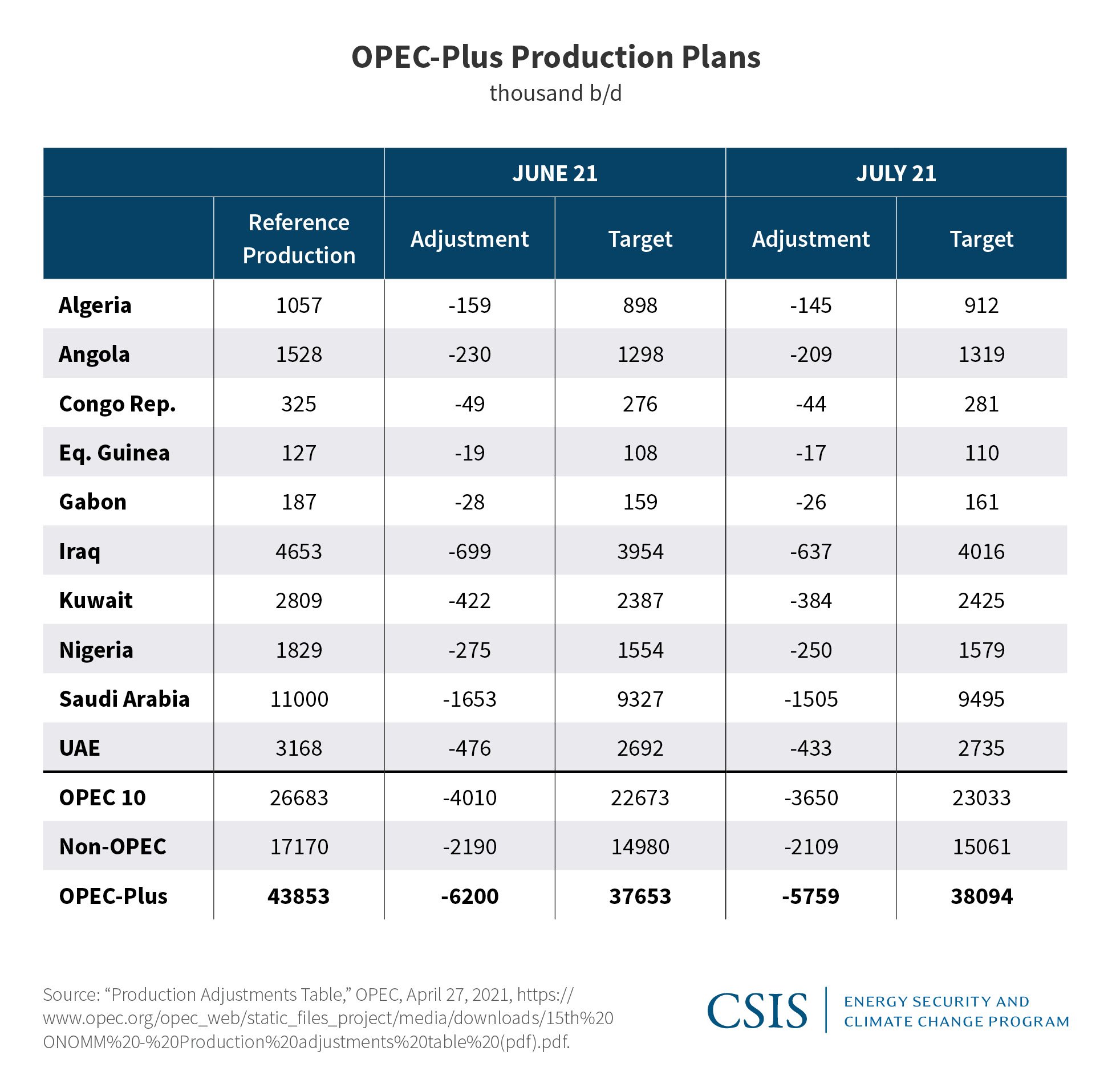 For the OPEC countries and allied producers in the OPEC-plus framework, the return of Iranian barrels presents a challenge but has not created a shift in market management. Following the largest-ever production cuts last year, OPEC-plus is gradually adding more barrels to the market. In its June 1 meeting, OPEC-plus decided to stick with its current plan to add 350,000 b/d in June and another 441,000 b/d in July (see table). Saudi Arabia also plans to unwind its additional cut of 1 million b/d within the next few months. Increasing air and road travel in the United States and Europe have given OPEC-plus more confidence that the market can absorb these barrels.