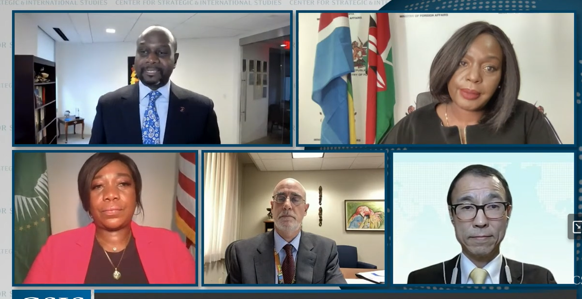 I’m honored to welcome our distinguished panelists this morning as well. Ambassador Koji Yonetani, assistant minister for African affairs in the Japanese Ministry of Foreign Affairs. Ambassador Hilda Suka-Mafudze, permanent representative of the African Union to the United States. Ambassador Raychelle Omamo, cabinet secretary for foreign affairs of the Republic of Kenya. And Ambassador Robert Scott, United States deputy assistant secretary of state for African affairs.