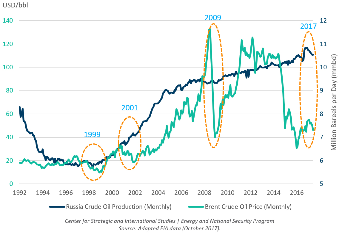 Russian Crude Oil Production and Timing of OPEC/non-OPEC Cuts