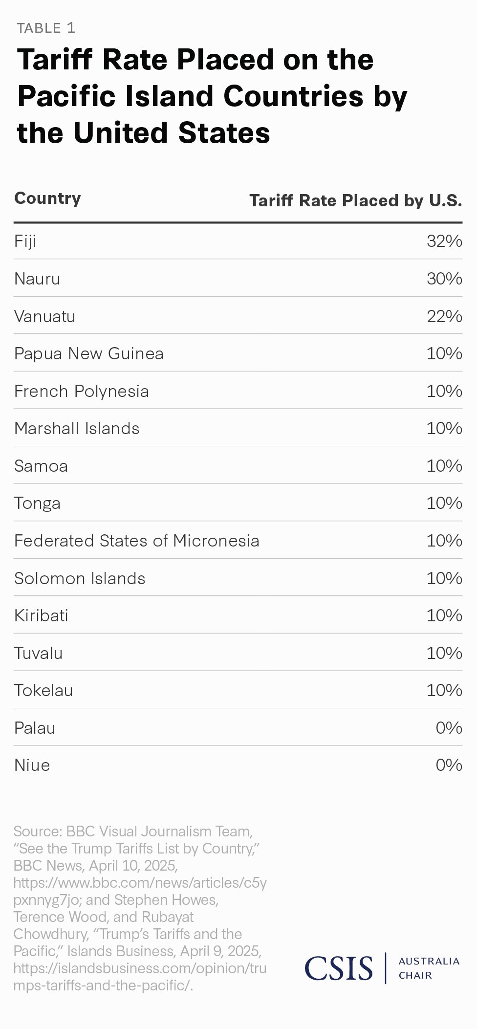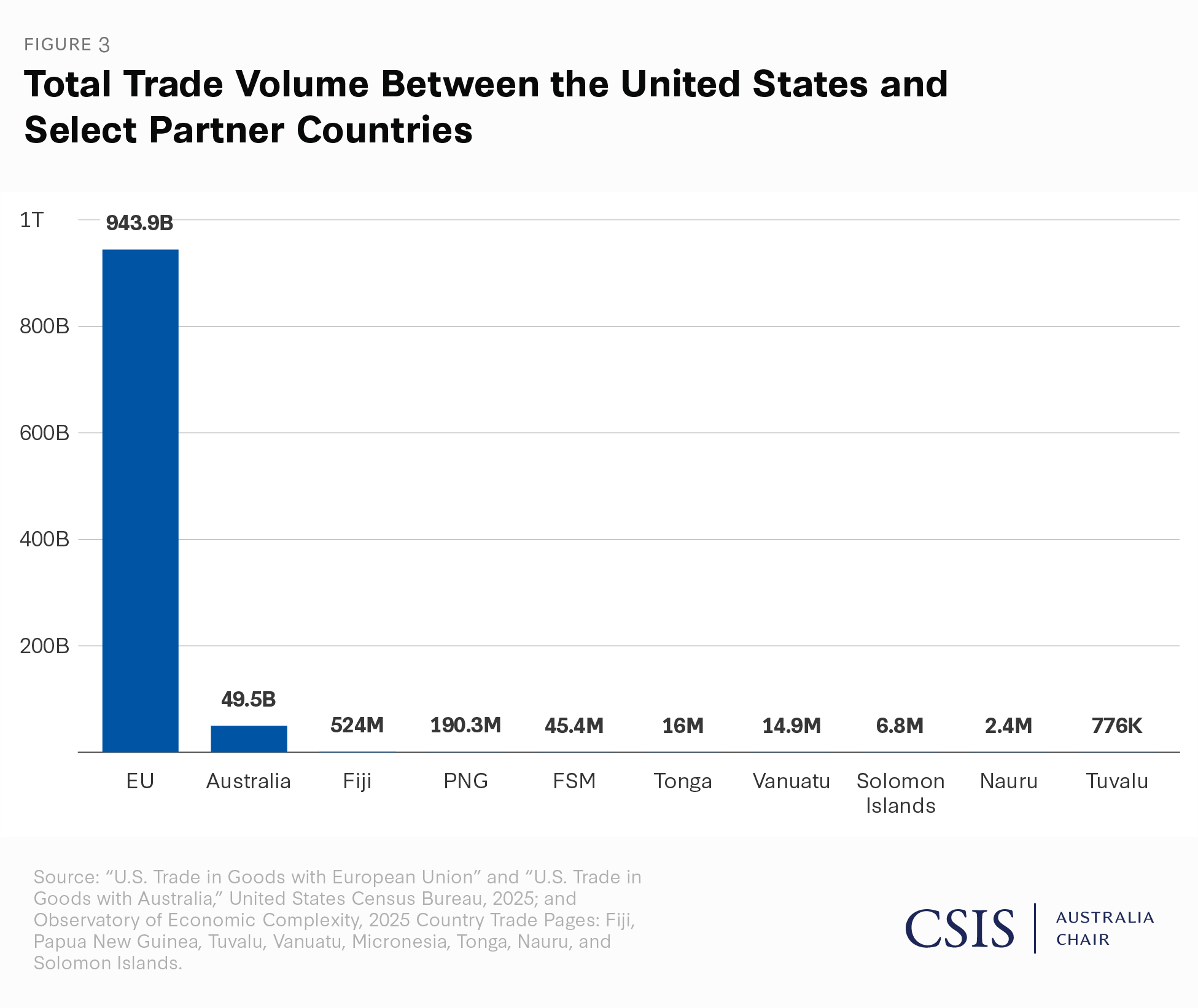 The U.S. government has framed these tariffs as both an attempt to level the playing field and as a tool for negotiation. Neither of these justifications makes sense for the Pacific. As small island states with limited markets and opportunities, trade plays an outsized role in bolstering small economies—and yet, overall, U.S.-Pacific trade is almost insignificant on the U.S. ledger. U.S. two-way trade with the Pacific Islands totals around $1 billion, just a small fraction of the more than $7 trillion in global trade conducted by the United States. In other words, there is no “leveling of the playing field” between, for instance, Tuvalu and the United States.