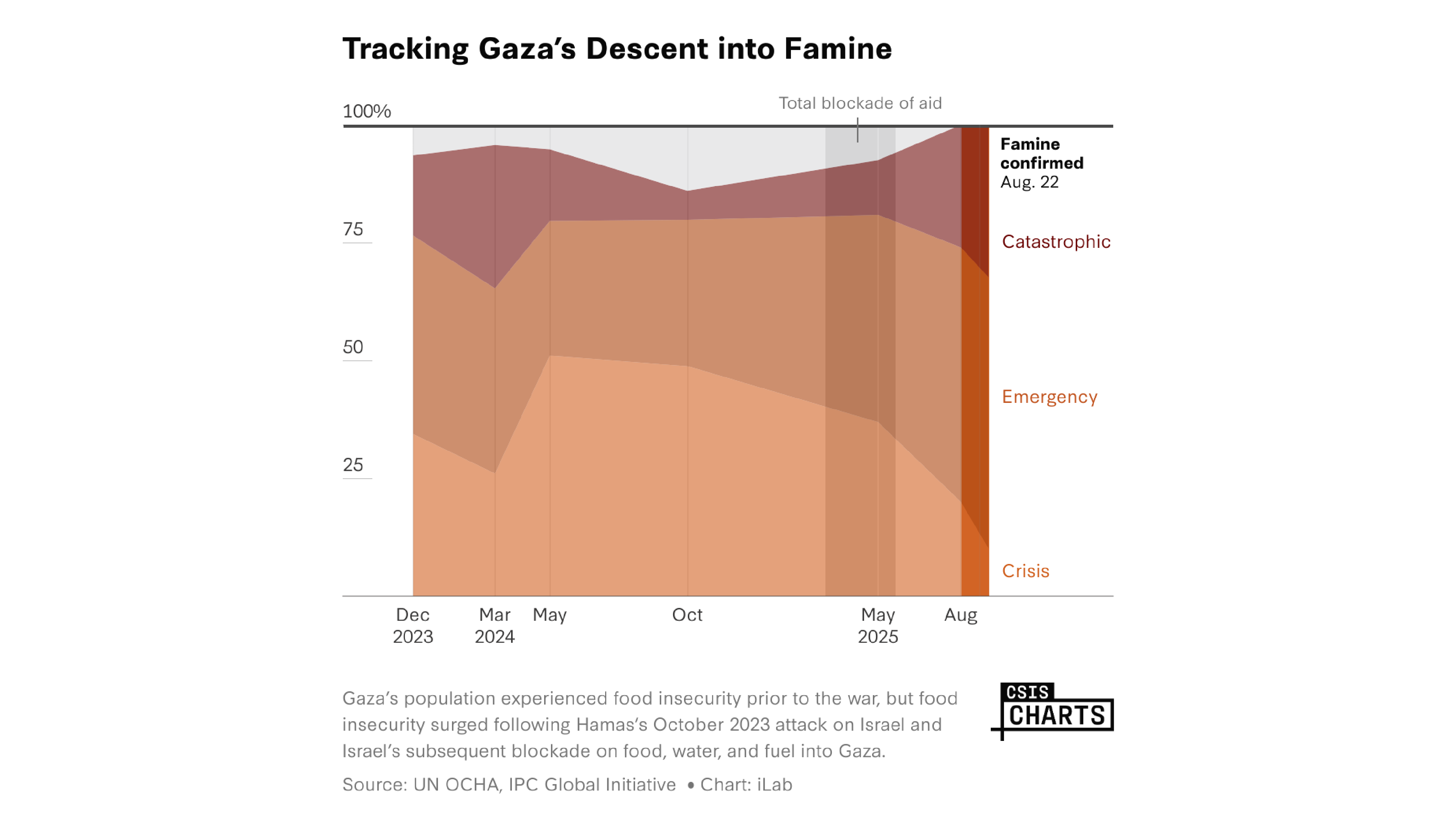 On August 22, the Integrated Food Security Phase Classification (IPC) announced that famine is currently occurring in Gaza, marking only the fifth such classification since the IPC was formed in 2004 and the first in the Middle East.