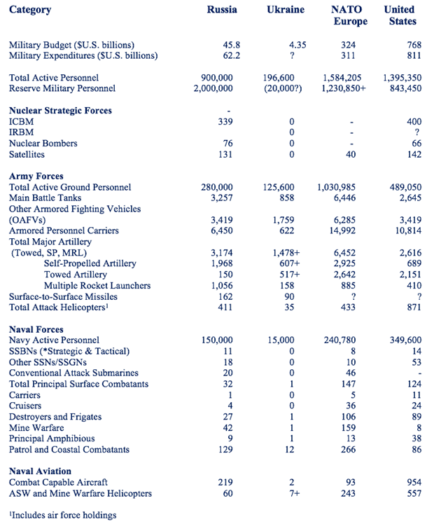 Figure One: Ukraine Military Balance in Late 2021: Part One