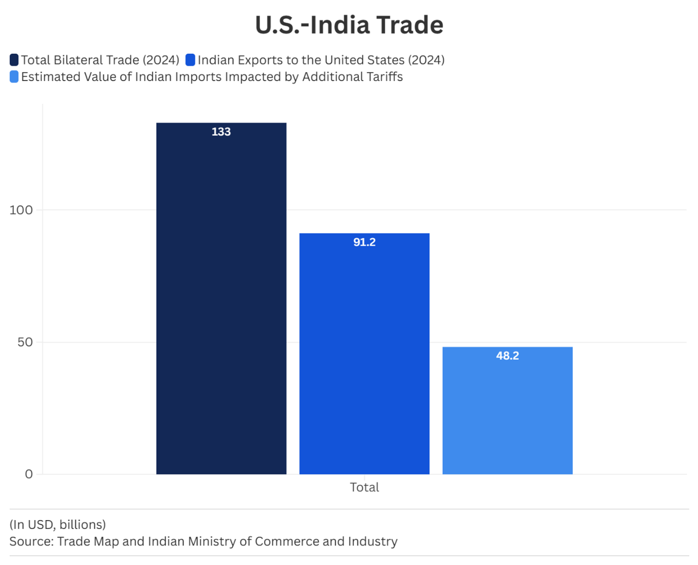 Beginning on August 27 at 12:01 a.m. EDT, the United States doubled the tariff rate on imports from India to 50 percent. The measure affects an estimated $48.2 billion worth of goods and follows five unsuccessful rounds of trade negotiations. The White House's actions are a response to India’s purchase and resale of Russian oil, adding new pressure to the U.S.-India trade relationship at a time of heightened diplomatic activity across Asia.