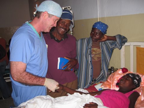 Its 3:30pm and we have been on site for 5 hours. The Baptist Mission Hospital here in Fermathe has two doctors and about 100 beds. Since the hospital is 20 miles north of Port au Prince, it is normally used as a referral hospital. But it is all pretty simple; it did not have even a basic lab until last month; it does not have blood for transfusions; and it is very elementary. For example, we have one patient being transfused. She had a gastrointestinal bleed last night and her hemoglobin is only two. There is no blood, so she is being transfused directly from the vein of a doctor of the same blood type. All serious injuries are coming here. The hospital consists of a single functional operating room, two large ward rooms, and a single long hall connecting them all. It has been overwhelmed.