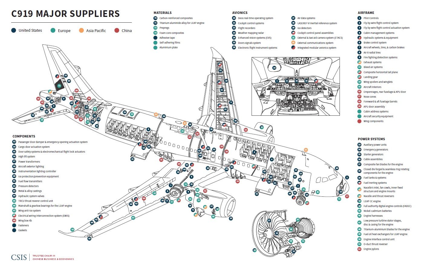 The dependence on foreign suppliers goes beyond the individual components they sell to COMAC. Since they have decades of experience supplying parts to other commercial aircraft, they have an immense amount of knowledge about the process of integrating the various components together. Guidance from international suppliers has been critical in the C919’s development.