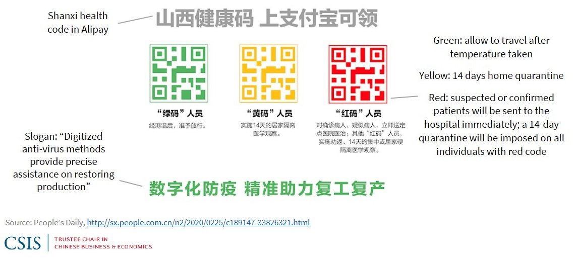 The downside of having the private sector take the lead is the lengthy and challenging process of integrating multiple provincial systems into an integrated national system, a prerequisite to restoring domestic travel. For the first few weeks, a health code issued by one province was not necessarily recognized by another, especially if one province used the Tencent health code system and the other used the Alipay system. Meanwhile, given that virus control policies vary among provinces, a green QR code issued in one city may not be qualified as green in another, further complicating regional travel.