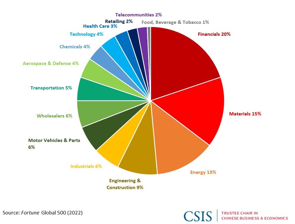 5. Almost Half of the Chinese Companies on the List Come from the Financial, Materials, and Energy Sectors