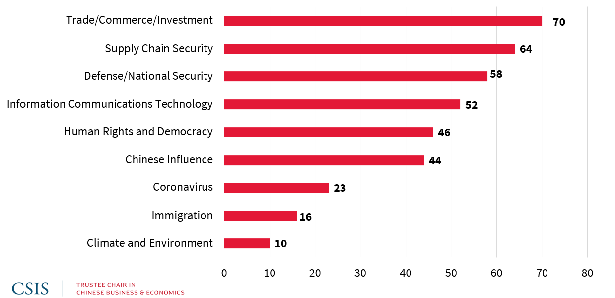 Figure 1: Topics Addressed in China-Related Bills in 116th Congress (Jan 2019 – Aug 2020)