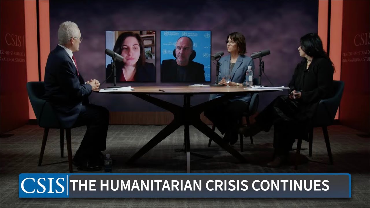 The CSIS live studio conversations, ‘Gaza: The Human Toll,’ are a product of the CSIS Bipartisan Alliance for Global Health Security, with co-sponsorship of the CSIS Humanitarian Agenda and the CSIS Middle East Program. The show will convene regularly during this crisis period to capture clearly and accurately the evolving humanitarian and health situation inside Gaza, understand how the conduct of the conflict is shaping outcomes and future policy and operational choices, think carefully about what may lie ahead, and hear from key operational international agencies and NGOs providing humanitarian assistance, as well as other experts with vital insights. Throughout these conversations, speakers will explore current and proposed U.S. policies.
