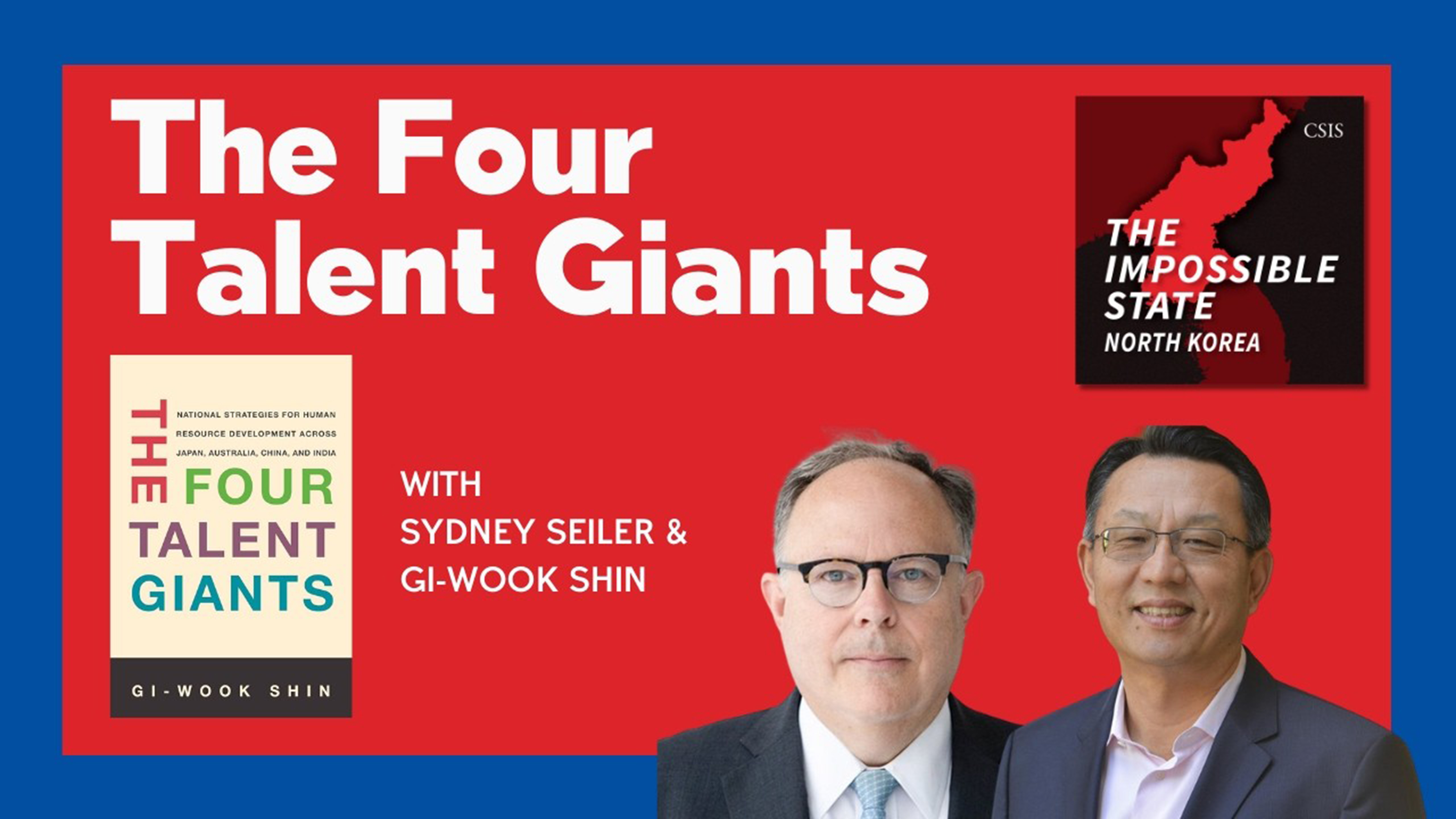 Please join The Impossible State Live podcast for a special episode featuring Stanford University Professor Gi-Wook Shin's new book, The Four Talent Giants. Moderated by Mr. Sydney Seiler, the episode features Professor Gi-Wook Shin, William J. Perry Professor of Contemporary Korea in Sociology and Director of the Stanford Next Asia Policy Lab at Stanford University.