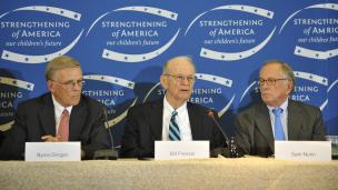 Former U.S. senators Sam Nunn (D-GA), Pete Domenici (R-NM), Warren Rudman (R-NH), and Evan Bayh (D-IN) have convened a bipartisan group of former senators and representatives to come together for four forums to raise public consciousness of the country’s growing and unsustainable debt. They are calling their effort, Strengthening of America—Our Children’s Future.